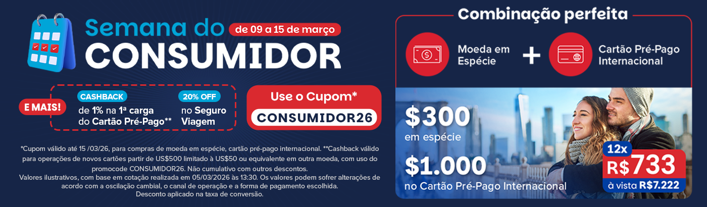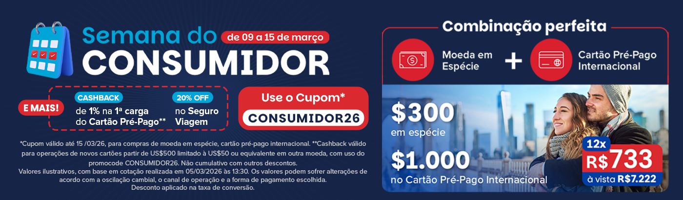 Seguros, Cartão pré-pago, Câmbio Programado, Chip Internacional, Ingressos para Parques e Shows