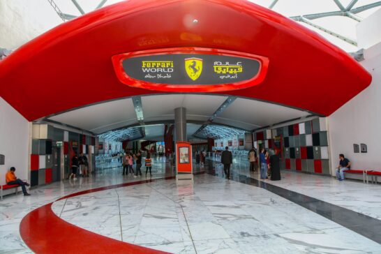 O Ferrari World em Abu Dhabi, nos Emirados Árabes Unidos, é um parque temático dedicado à famosa marca italiana de carros esportivos. Este parque é o lar da montanha-russa mais rápida do mundo, a Formula Rossa, que atinge velocidades impressionantes em questão de segundos.