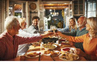 Com uma atmosfera contagiante, famílias e amigos aproveitam a data para se reunir e compartilhar uma refeição farta, geralmente centrada em um delicioso (e quase obrigatório no menu) peru assado, seguido por tortas de abóbora e nozes pecã, entre outros pratos tradicionais.