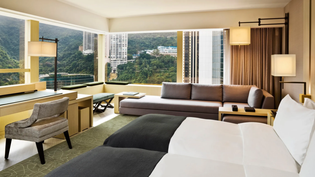 O The Upper House é considerado um lugar para se renovar. Seus quartos e estúdios chamam a atenção pelo tamanho que oferecem em Hong Kong. Os espaços modernos e restauradores revelam tons suaves e janelas do chão ao teto que mostram a cidade. O uso de banheiras de calcário “solidifica seu status como uma obra-prima de luxo discreto”.