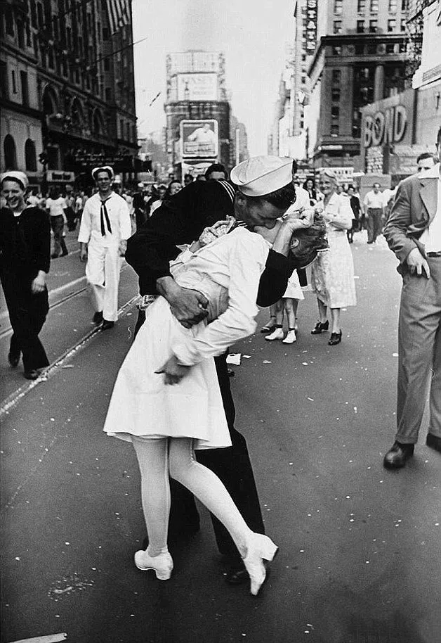 A imagem captura um marinheiro beijando uma enfermeira desconhecida no meio da multidão que celebrava o fim da guerra. Tirada pelo fotógrafo Alfred Eisenstaedt, essa imagem se tornou um símbolo de alívio após anos de conflito.
