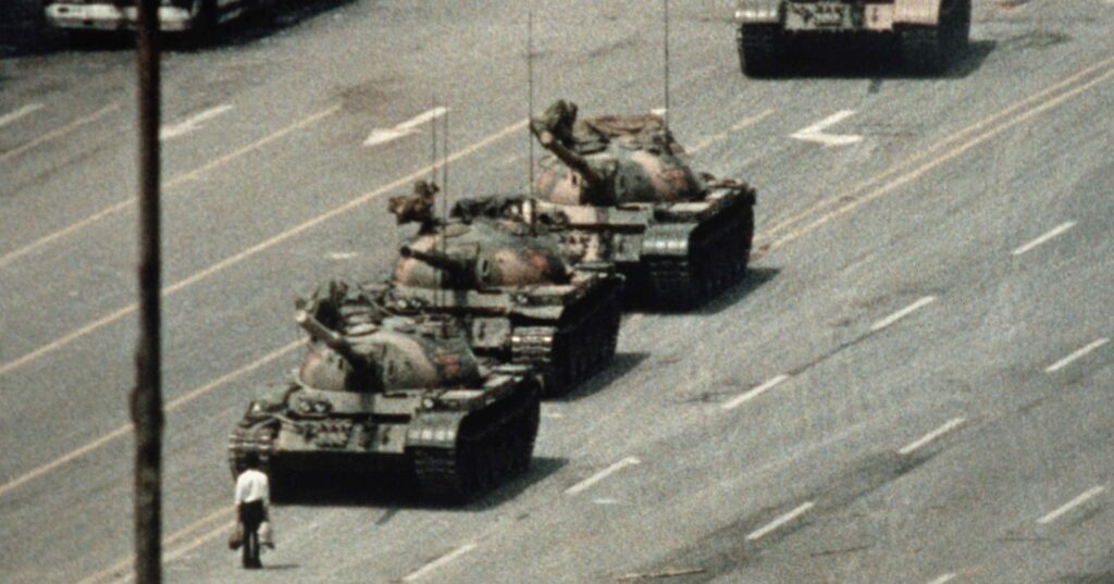 Em 1989, uma imagem capturou a atenção do mundo quando um homem ficou em frente a uma coluna de tanques na Praça da Paz Celestial (Tiananmen), em Pequim, durante os protestos pró-democracia.