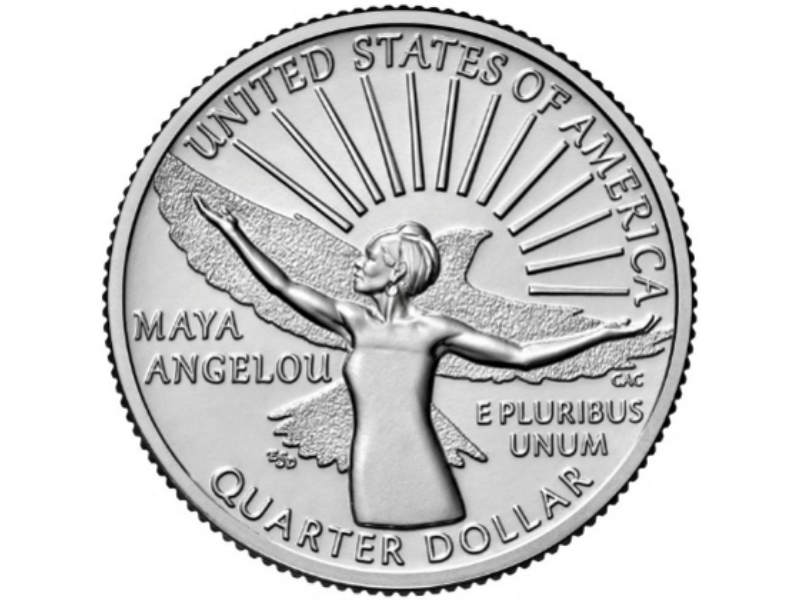 Maya Angelou passou a estampar, desde o ano passado, a moeda de 0,25 dólar americano. A ação póstuma é um símbolo de resistência, já que ela foi a primeira mulher negra a receber esse tipo de homenagem.