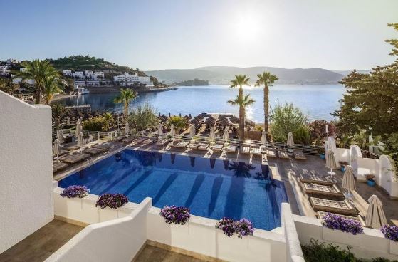 Importante reforçar que este hotel atende com o conceito All Inclusive durante o verão e recebe seus hóspedes com o conceito Bed & Breakfast no inverno, destinado apenas para adultos. Localizado apenas a 900 metros do centro da cidade de Bodrum, o resort à beira-mar possui uma linda piscina com vista panorâmica para o mar, um SPA e diversas opções de entretenimento.