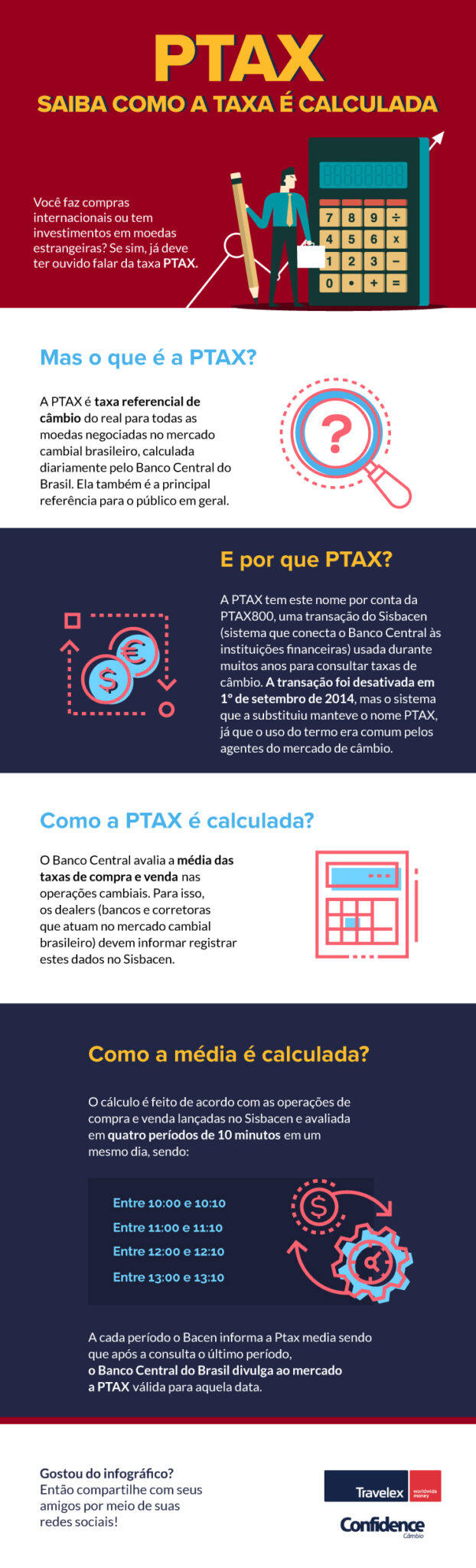 A Travelex Confidence preparou um infográfico para que você entenda como a PTAX é calculada. Veja abaixo!