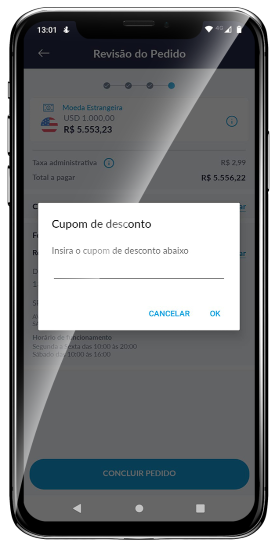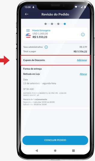 Adicione o cupom promocional