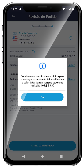 Confira o resumo de sua compra